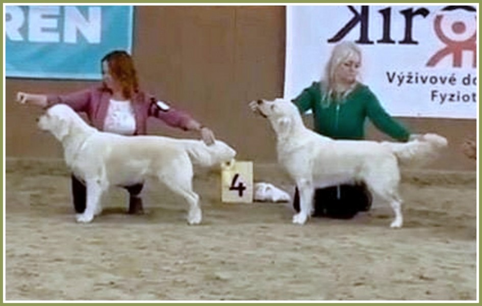 vše zvládly úplně bez problémů, krásně se předvedly a od paní rozhodčí si obě vyběhaly nádherné a bezchybné posudky v obrovské konkurenci